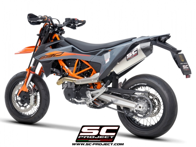 Le silencieux X-Plorer II GT est la réponse du département R&D de SC-Project pour un maxi-motard comme la KTM 690 SMC R / Enduro R. SC-Project a développé cet échappement au design épuré. L'embout en fibre de carbone s'intègre parfaitement dans la forme du silencieux entièrement en titane ultra-léger.