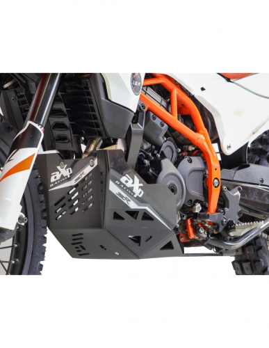 Sabot Adventure pour KTM 390 Adventure R / Enduro R - Poids : 3,6kg - Conçu en plastique polyéthylène haute densité d’épaisseur 8mm, le sabot AXP offre une protection complète de votre moto, de la pompe à eau, au bloc moteur, en passant par le système d’échappement et des carters. Le système de fixation s’ancre directement sur le cadre afin d’éviter toute prise sur le bloc moteur et permet une meilleure absorption des impacts. Pour un maximum de protection en façade, le klaxon a été repositionné vers l’arrière et monté sur la fixation avant en aluminium. Ce sabot est également disponible en orange sous la référence AX1812. Avant de commander, visitez la page caractéristiques du produit afin de vérifier la compatibilité de votre équipement (crash bars et/ou béquille centrale) avec notre sabot. Tous les composants et vis sont inclus dans le package. ATTENTION : cette référence se monte uniquement sur les modèles KTM 390 Adventure R / Enduro R mais n’est pas forcément compatible sur toutes les années du modèle. NOTE : La conduite tout-terrain implique des contraintes importantes et des risques d’impact sur la moto et ses composants. Les produits AXP Racing sont conçus pour améliorer la protection et la durabilité ; toutefois, ils ne peuvent être considérés comme une garantie infaillible contre les dommages. AXP Racing décline toute responsabilité pour les dommages résultant de l’utilisation, des chocs ou d’une mauvaise utilisation.