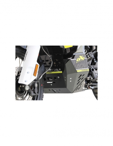 Sabot Husqvarna Norden 901 TOURING . Compatible avec la béquillé centrale d’origine KTM / HUSQVARNA – 3.6Kg. Sticker inclus mais non collé lors de la livraison. Fabriqué à partir de polyéthylène haute densité d’épaisseur 8mm, ce sabot a été conçu pour protéger le bloc moteur et le réservoir des impacts. La version TOURING utilise un système de fixation spécifique à l'arrière qui se prend dans les trous des carters latéraux prévus à cet effet afin d'éviter tout dégât sur le dessous du bloc moteur. Une mousse d'épaisseur 8mm est fournie pour placer entre le réservoir et la protection et éviter le frottement. Enfin, la plaque anti boue empêchera les divers débris de pénétrer à l'intérieur sans impacter le refroidissement! Les avantages par rapport à l'Alu ? Plus léger, plus silencieux, le plastique ne génère pas de vibrations et ne reste pas déformé après un choc NOTE: Ce modèle est compatible avec la béquille centrale d'origine KTM / Husqvarna et a été conçu pour un usage soft, c'est à dire route et petits chemins. Si vous prévoyez de faire plus de offroad et de rouler dans les rochers, il est préférable de vous procurer notre version HARD, non compatible avec béquille centrale mais encore plus résistante et disponible à la page précédente! Tous les composants et vis sont inclus dans le package. Avant de commander, visitez la page caractéristiques du produit afin de vérifier la compatibilité de votre équipement (crash bars et/ou béquille centrale) avec notre sabot.